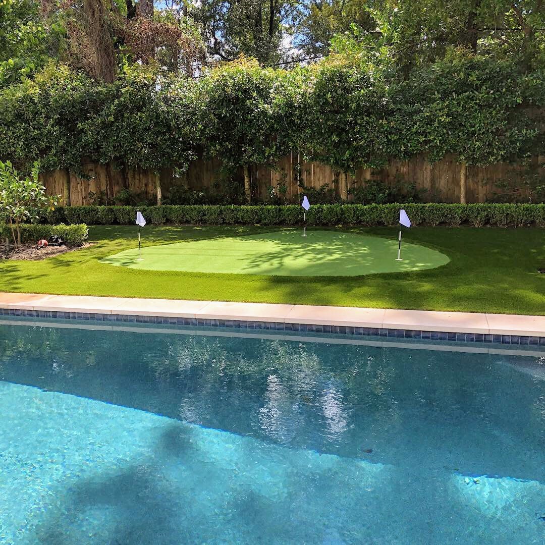 Contact Houston Fake Grass today for a free quote on custom backyard putting greens in Houston, Katy, Sugar Land, and beyond.